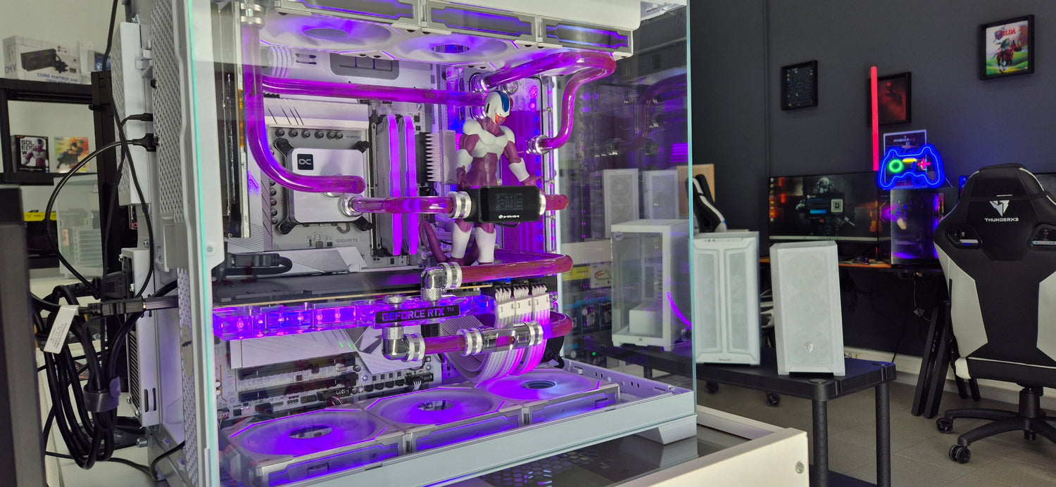 Offrez à votre configuration PC le refroidissement qu’elle mérite avec un système de Watercooling Custom. Conçu pour les passionnés de performances et les amateurs de personnalisation, le watercooling vous permet de maintenir vos composants à des températures optimales tout en donnant un look unique et sophistiqué à votre machine.